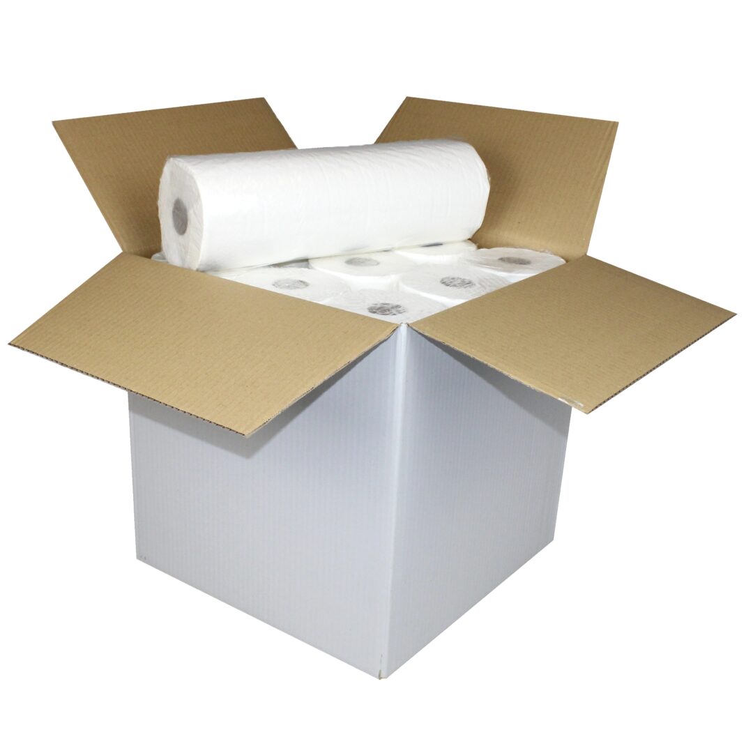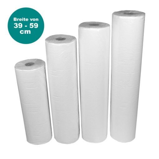 Ärzterollen/Ärztekrepp, hochweiß, 2-lagig, Zellstoff, perforiert, 50×37 cm, 135 Abrisse, 50 m, 9 Rollen (Art. 30550-1)