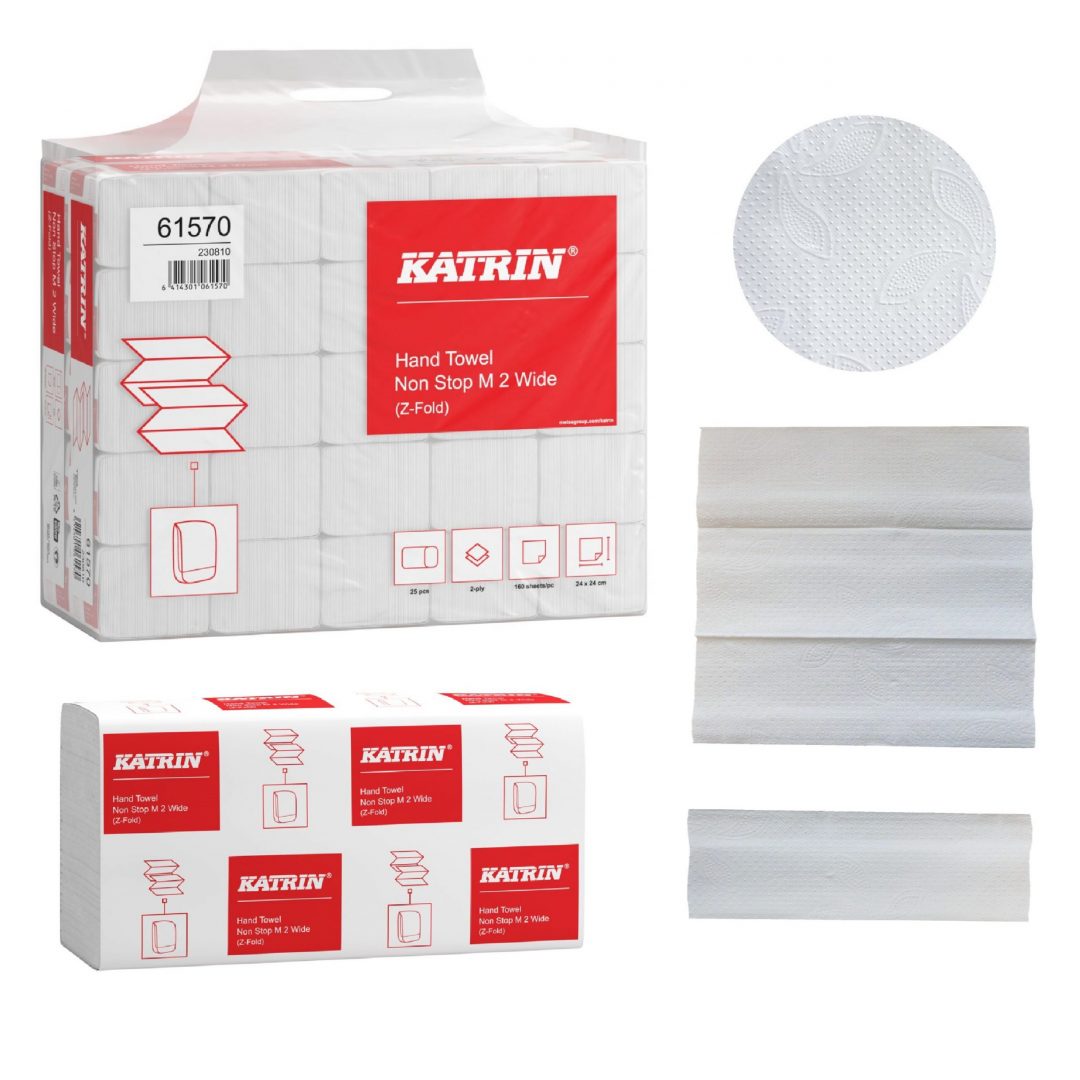 Falthandtuch Katrin Non Stop M, 2-lagig, weiß, Recyclingpapier (RC), N-Falz, 24×24 cm, 4000 Tücher (Art. 90563)