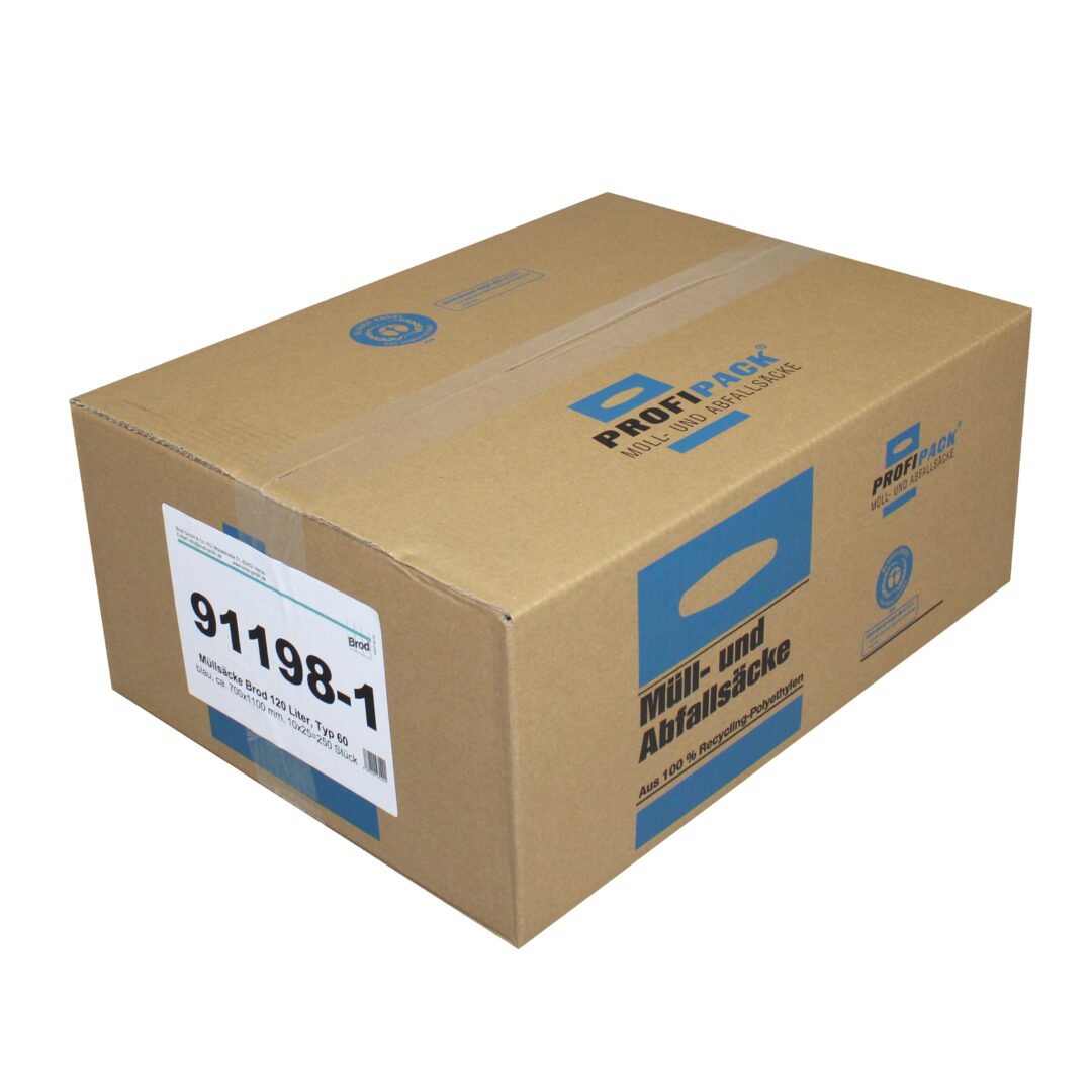 Müllsäcke Brod, blau, 120 Liter, LDPE-REG, 700×1100 mm, Typ 60, 23 µ, 10 Rollen a 25 Stück im Karton (Art. 91198-1)