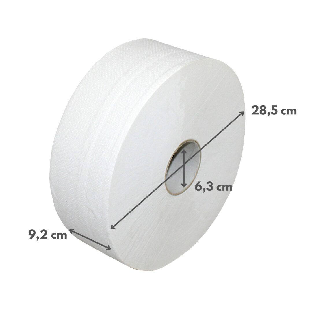 Toilettenpapier Brod Jumborolle, 2-lagig, weiß, Recyclingpapier (RC), 1945 Blatt, 350 m, 6 Rollen (Art. 90649)